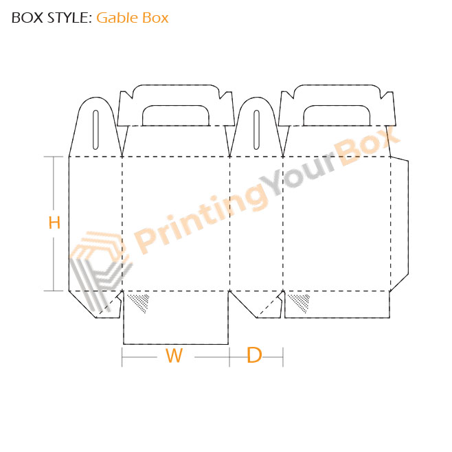Gable Box Template made in any sizes, Shapes and design. PYB offer quality packaging services with free shipping. Attractive wholesale boxes are a perfect match for your products.
